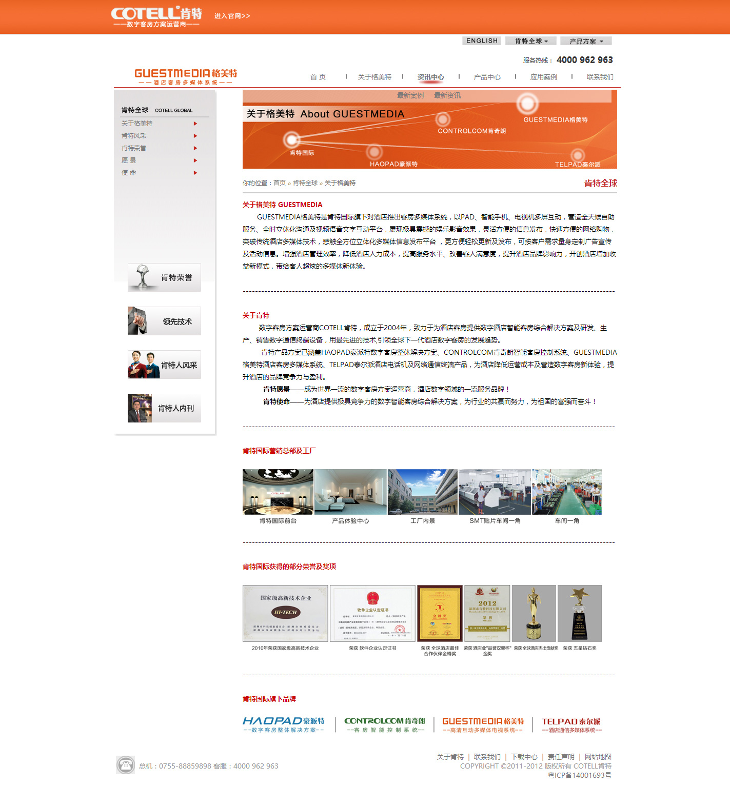 GUESTMEDIA格美特是肯特国际旗下对酒店推出客房多媒体系统,以PAD、智能手机、电视机多屏互动,营造全天候自助服务、全时立体化沟通及视频语音文字互动平台。